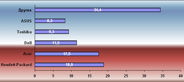 მიმდინარე წლის, პირველი კვარტლის, პორტატული კომპიუტერების საბაზრო წილის სტატისტიკა. კომპანია iSuppli–მა გამოაქვეყნა მიმდინარე წლის პირველი კვარტლის, მსოფლიო ბაზარზე პორტატული კომპიუტერების რაოდენობის, სტატისტიკა. სამი თვის განმავლობაში, მსოფლიოში, გაიყიდა 48,7 მლნ ნოუთბუქი და ნეტბუქი. ეს რაოდენობა 5,4%–ით ნაკლებია გასული წლის ბოლო ოთხი თვის მაჩვენებელთან შედარებით (51,5 მლნ ერთეული). პორტატული კომპიუტერების უმსხვილეს მწარმოებალად რჩება Hewlett-Packard, რომლის საბაზრო წილი […]