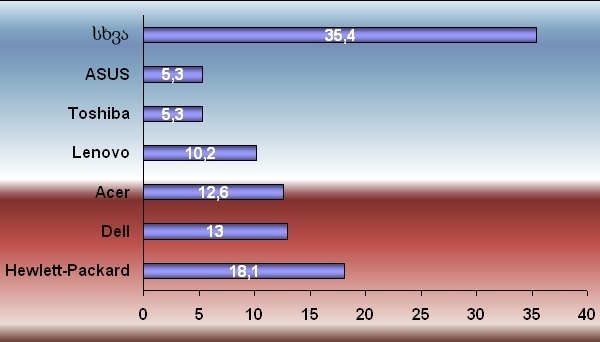 კომპანია IDC–მა გამოაქვეყნა მიმდინარე წლის მეორე კვარტლში მსოფლიო ბაზარზე პერსონალური კომპიუტერების მონაცემები. სამი თვის განმავლობაში გაიყიდა დაახლოებით 81,5 მლნ სამაგიდო კომპიუტერი, ნოუთბუქი და ნეტბუქი. ეს მონაცემები 22,4%–ით (66,7 მლნ) მეტია 2009 წლის მეორე კვარტლის რეზულტატთან შედარებით. 14,8 მლნ გაყიდული პერსონალური კომპიუტერით ლიდერობს უმსხვილეს მწარმოებლი Hewlett-Packard, რაც 12,2%–ით მეტია გასული წლის მონაცემთან შედარებით. HP–ის საბაზრო წილი შეადგენს ზუსტად 18,1%. […]
