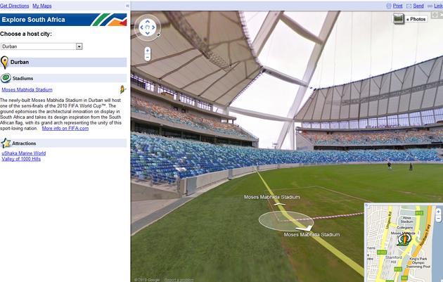 FIFA.com-მა და South African Tourism-მა Google Maps-ს დაამატეს ინფორმაცია ქალაქებზე, სტადიონებზე და ადგილობრივ დასასვენებელ ადგილებზე. Street View ხელმისაწვდომია პირდაპირ სტადიონზე. რუკის სანახავად დააჭირეთ აქ.