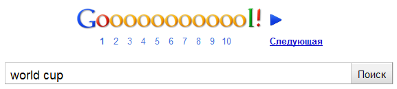 კიდევ ერთი სასიამოვნო ინფორმაცია google-სგამ ფეხბურთის გულშემატკივრებს. ჩაწერეთ საძიებო სიტყვა «world cup» და დააჭირეთ ძებნას.