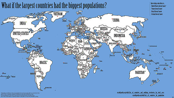 როგორი გახდება მსოფლიო რუკა, თუ თიოთოეული ქვეყანა “მიიღებს” მოსახლეობის რაოდენობის შესაბამის ტერიტორიას