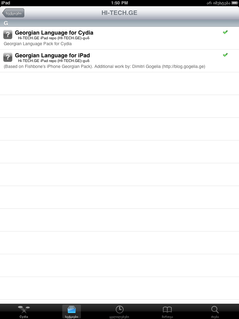 მოგესალმებით ყველას და მინდა გაუწყოთ, რომ დასრულდა iPad-ის გაქართულების პირველი ეტაპი. ამ ეტაპზე გაქართულებულ იქნა პროგრამული უზრუნველყოფის და პარამეტრების უმთავრესი ნაწილი. დარჩენილი ნაწილის გაქართულება და შემდგომი დახვეწა გაგრძელდება უკვე ხანგრძლივი პერიოდის განმავლობაში. ასევე მინდა შემოგთავაზოთ ჩემი ახალი რეპოზიტორია რომელიც განთავსებულია პროექტის ვებ-სატიზე თქვენს Cydia-ში დაამატეთ შემდეგი რეპოზიტორიის მისამართი ipad.hi-tech.ge და ინფორმაციის განახლების შემდეგ სექციებში ჩაემატება […]